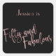 Fifty and Fabulous Rose Gold on Black Birthday Square Sticker