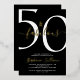 Fifty and Fabulous script, minimal gold, black and white modern 50th birthday invitation that you can personalize and send out for your fiftieth birthday party celebration. The "50 and Fabulous" is set in a popular script font.