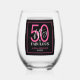Fifty and Fabulous Script 50th Birthday Stemless Wine Glass