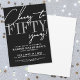 The party details are arranged neatly at the bottom in classic white serif fonts, keeping the layout minimal and refined. The invitation has sleek black backgrounds on the front and white on the back. All colours can be customised to match your theme or personal style.