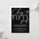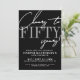 Celebrate in style with this modern elegant Fifty Birthday Party Invitation, perfect for marking a milestone in a chic, timeless way. The design features a large “FIFTY” in light grey serif font at the top, with white script fonts above and below reading “Cheers To Fifty Years!” for a stylish, celebratory look.