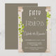 Greek-themed design of ancient columns with gently cascading vines that beautifully frame the 50th birthday party invitation. Warm and soft earthy tones of beige, sand and a pop of grapevine green. Elegant white text on a chocolate brown / taupe background complements the design, making it stylish and easy on the eye.