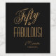 Fifty & FABULOUS Elegant Script Black & Gold Wine Label