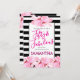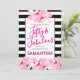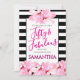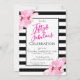 Fifty & Fabulous Pink Floral Black Stripe Birthday Invitation