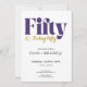 Celebrate a fabulous milestone with this Fifty & Feeling Nifty 50th Birthday Invitation, featuring bold purple and gold typography on a clean white background. The phrase “Fifty & Feeling Nifty” is part of the fixed design and cannot be edited, while all other text can be personalized directly on Zazzle. Perfect for a modern and elegant 50th birthday celebration that captures fun, confidence, and style, customize your details in minutes and make it an unforgettable night.