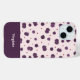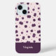 A phone case with a pattern of fig on a light pink background and, at the bottom, a customisable first name or text of your choice on a purple background. A lovely gift for a friend who loves fruits.