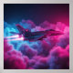 Fighter Jet Above The Clouds Colourful Poster