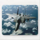 Great photo of a fighter jet in the sky. Great capture with beautiful clouds and islands visible on the ground.