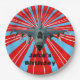 Fighter jet on dynamic red background paper plates.