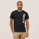 Black martial arts t-shirt with fighter printed vertically in white on the front.