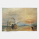 A vintage travel and transportation Victorian fine art maritime painting. A nautical seascape at sunrise or sunset. This ship was one of the last second-rate ships of the line that played a unique role in the Battle of Trafalgar in 1805. HMS Temeraire, popularly known as 'Saucy Temeraire' or "Fighting Temeraire" amongst its crew, was a 98-gun ship. It retired in 1838. The painting shows the ship's last moments of existence post-retirement. In the picture, it is being towed in the river Thames, from Sheerness towards its final berth Rotherhithe, in 1838, to be broken up for scrap. Turner's configuration is quite bizarre such that the most important object, the old warship, is well placed to the left of the painting. Temeraire's grace is further augmented when compared to the contemporary steam propelled dirty black coloured tug.