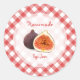Customisable retro stickers for homemade figs jam, jelly or preserves jars with fresh figs on red and white gingham tablecloth pattern.