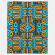 blue and orange pattern, in the style of Mayan art, tech-inspired