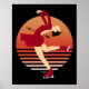 Artistic illustration of an ice dancing ballerina doing figure skating in front of a retro sunset.