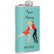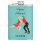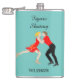 The flask itself is fine. It’s a cheap flask, obviously bought in bulk, however am prepared to overlook that. Given that it is a personalized item, I would have liked to have seen gift boxing instead of the generic packaging. Terrible printing, and/or quality. It’s a cheap, tacky vinyl. It is not cut straight and is also applied in a way that it is overhanging the bottom, causing the glue to catch on items and it will eventually roll and tear, damaging the wrap.