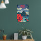 Escape to the South Pacific with this stunning Fiji Travel Art Poster! Rendered in a bold, retro-graphic style, this piece features a giant, blooming red hibiscus against a backdrop of majestic volcanic mountains and a shimmering turquoise lagoon.