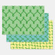 My original designed digital artwork is featured on this pretty wrapping craft paper, consisting of green filigree shaped lines, with each of the three sheets on a different background of sage, blue and yellow and in different angles for a fun and retro style. This is a set of three sheets of matte finish wrapping paper printed on heavy weight paper with grid lines on the back. Great to use for crafts and scrapbooking! This one-of-a-kind gift wrap and craft paper will make your gifts and projects stand out. These can be used for any holidays or gift occasion.