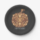 Filigree Orange Glowing Pumpkin Halloween Party Plates. Customise with any text. Matching items are available.
