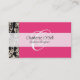 filigree monogram; pink// white design business card
