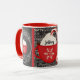 A gorgeous black, white, and red mug with the words; "Hot cocoa filled with love". Personalise with a name written in the whipped cream topped on the centre red cocoa mug. Perfect as a gift for a friend, secret Santa, family, or anyone on your list!