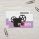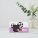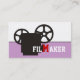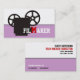 Film maker/director/Movie maker business cards business cards, featuring a black vitage 35 mm movie style camera and the word “FILMAKER” with the M in red in the middle, on white and lilac purple background.