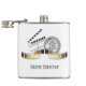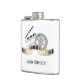The flask itself is fine. It’s a cheap flask, obviously bought in bulk, however am prepared to overlook that. Given that it is a personalized item, I would have liked to have seen gift boxing instead of the generic packaging. Terrible printing, and/or quality. It’s a cheap, tacky vinyl. It is not cut straight and is also applied in a way that it is overhanging the bottom, causing the glue to catch on items and it will eventually roll and tear, damaging the wrap.