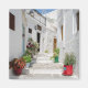 Whitewashed architecture with plants leading up the steps in the beautiful picturesque village of Filoti on the Greek island of Naxos.