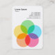 A business card template with a geometric abstract motif made up of five overlapping semi-transparent circles in five different colours arranged around a centre point. Company name, business type and address on the front with name, job title, telephony, web and email addresses on the back, with a similar layout on the back. This card can also be further customised.