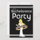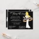 A yellow haired bride-to-be holding strappy white sandals in her hand while dancing in the centre of a wedding band is the centerpiece of this whimsical bachelorette party invitation. Text reads: "Final fling before the ring". There is plenty of customisable text to add your party information. The other side of this invitation has this trendy graphic with additional customisable text. We also have this bride available with other hair colours. Buy in bulk and save!