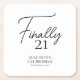 Finally 21 Black & White 21st Birthday Square Paper Coaster