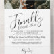 Finally belated wedding party with a tear-off RSVP in simple timeless black and white. Typographic script on a white background design wedding invitation reads Finally Celebrate with us. Simple modern contemporary design, personalise with your own belated wedding or renewal venue, couples name and reply details, and your favourite photo. This design requires no extra envelopes and has a detachable perforated RSVP for easy replies. Matching wedding products and other colour options available in the store. Design by www.mylittleedenweddings.com