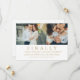 It's finally time! Announce your wedding in style with these elegant horizontal save the date announcement cards that feature three of your favourite engagement photos and wording on the front and back of the card that can be personalised with all of the important details. A modern, clean, and timeless design. Note, the antique gold and white colours can be customised.