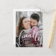 This save the date postcard is for couples who have dated or been engaged for a long time and are finally getting married. Hand lettered "finally" elegantly swoops along the bottom half of the card.