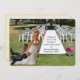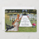 Finally getting married with this funny wedding Interracial Couple invitation flat card. Lucky that you will be invited to the wedding in this lifetime! Add the couple's names to this card. The registry for the bride and groom can be added to the right side of the back of the card. Or add registry cards with the business card template. The clay figurines of the bride dragging the groom are quite a humourous combination. This couple has been together for some time and now she wants to make it right. They may be a little early since the guests have not arrived yet.