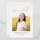 This stylish graduation announcement and invitation features a single photo with the word finally in gold foil above it. The back of the card can be used for an invitation or a personal message.