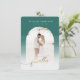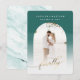 Finally Gold Script & Emerald Archway Framed Photo Save the Date Cards with Marble Texture back Side. These Save the Date Cards are soft, airy, and soo chic, with white fading ombre gradient overlay to highlight your text, and gold handwriting script font with tails. Personalise it with your photograph. Shown in faux gold foil lettering. - Wedding Save the Date custom photo cards!