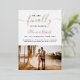 Finally getting married, save the date script simple chic photo on white with accents of real rose gold foil.