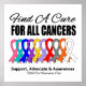 Be inspired and advocate boldly for a cure for all cancers with our exclusive collection of "FIND A CURE FOR ALL CANCERS" Awareness T-Shirts, Merchandise, Apparel & Gifts highlighting 10 colourful ribbons to stand for different cancers. In this collection, we have ribbon colours consisting of a pink ribbon for breast cancer awareness; a teal for ovarian cancer awareness including all gynaecologic cancers; a blue ribbon for colon cancer, anal cancer and rectal cancer awareness; a purple ribbon for pancreatic cancer and Leiomyosarcoma awareness; a gold ribbon for childhood cancer awareness; a lavender ribbon for ALL OTHER cancers causes; a red ribbon for blood cancer awareness; a grey ribbon for brain cancer and brain tumour awareness; an orange ribbon for leukaemia and kidney cancer awareness; a pearl ribbon for lung cancer awareness; and a white ribbon for bone cancer awareness. This standout design is available on a variety of shirts, hats, bags, mugs, buttons and more.