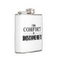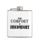 The flask itself is fine. It’s a cheap flask, obviously bought in bulk, however am prepared to overlook that. Given that it is a personalized item, I would have liked to have seen gift boxing instead of the generic packaging. Terrible printing, and/or quality. It’s a cheap, tacky vinyl. It is not cut straight and is also applied in a way that it is overhanging the bottom, causing the glue to catch on items and it will eventually roll and tear, damaging the wrap.