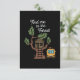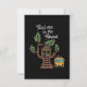 A tree with a hut in it and a camper van parked next to it. The words find me in the forest. This design looks really effective on these Greeting Card