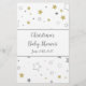 This baby shower game card features a script modern font on white background with grey and gold stars, perfect for a baby boy, baby girl or a surprise! Use this card for your gender reveal party!