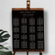 Elegant classic black and white minimalist wedding seating chart poster template with 4 columns with cca 16 tables (160 guests) on a clear white (changeable) background featuring a chic calligraphy script. +++++++++ Personalise it with your details and bride's and groom's names!