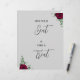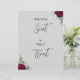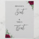 Find your seat and take a treat red rose wedding sign from Twin Spirit Designs is an ideal addition to any wedding ceremony. The design features a grey backdrop, green foliage, and red flowers.