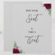 Find Your Seat & Take A Treat Red Rose Wed. Sign