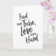 Inspirational greeting card displaying the phrase "Find your tribe, love them hard" in black brush script with an organic ink texture to achieve an authentic, hand lettered look.