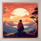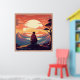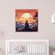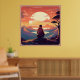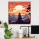 "This retro-style artwork captures a serene moment of contemplation as a character gazes at the sunset, paired with the inspiring quote: 'Happiness can be found, even in the darkest of times, if one only remembers to turn on the light.' The warm colours and nostalgic cartoon design evoke a sense of hope and reflection, perfect for uplifting posters or personalised merchandise."