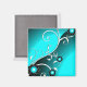 Fine Aqua Cool Cute Girly Retro Floral Magnet