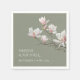 Fine art magnolia sage green wedding napkin with bride and groom names and your wedding date.