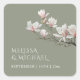 Fine art magnolia sage green wedding sticker with bride and groom names and your wedding date.