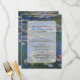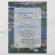 Large wedding table menu done in with the fine art painting of Monet entitled Water Lilies as the background. Graphics of a delicate gold tone frame surrounds the menu text area. Personalise all the text to suit your wedding reception menu.